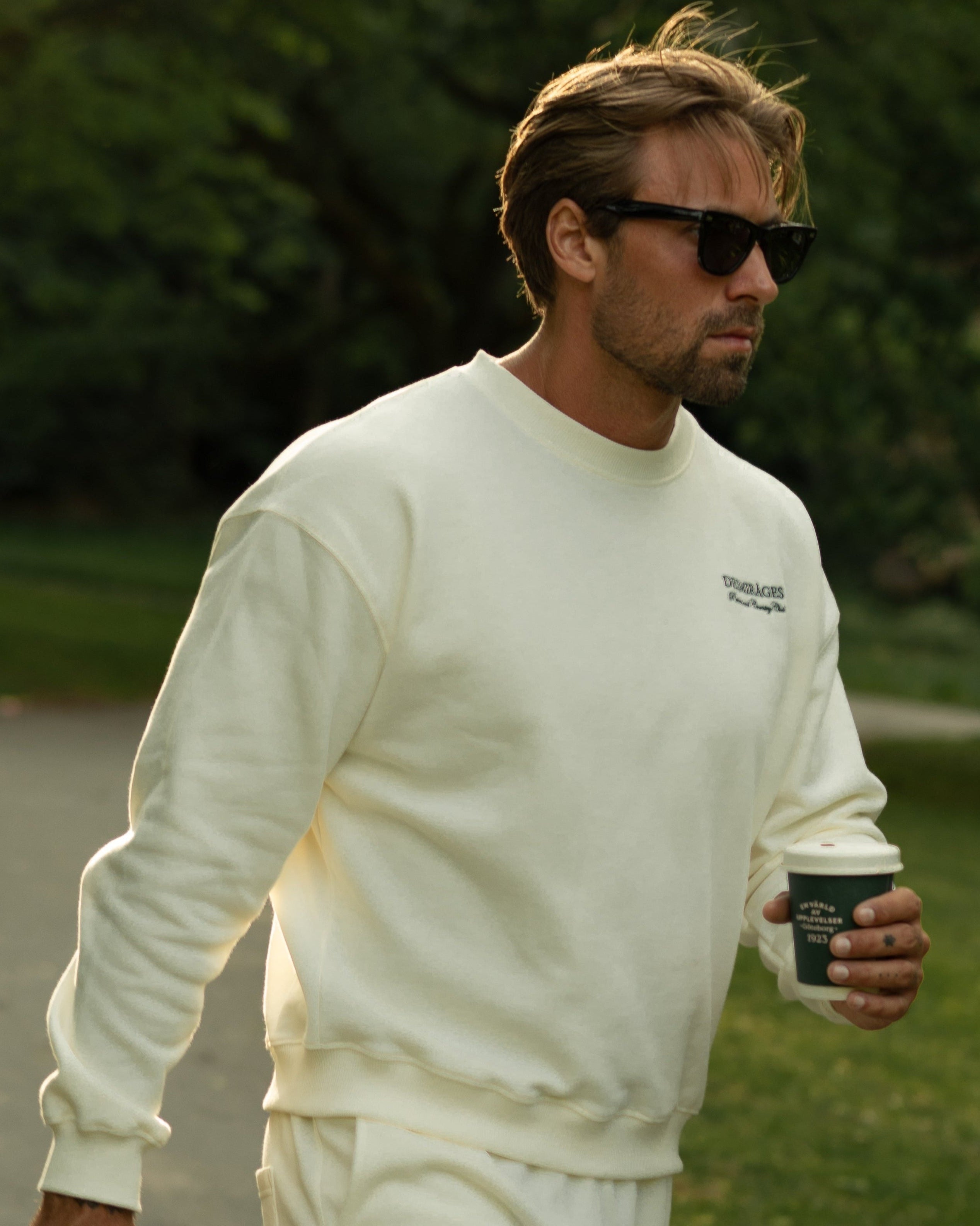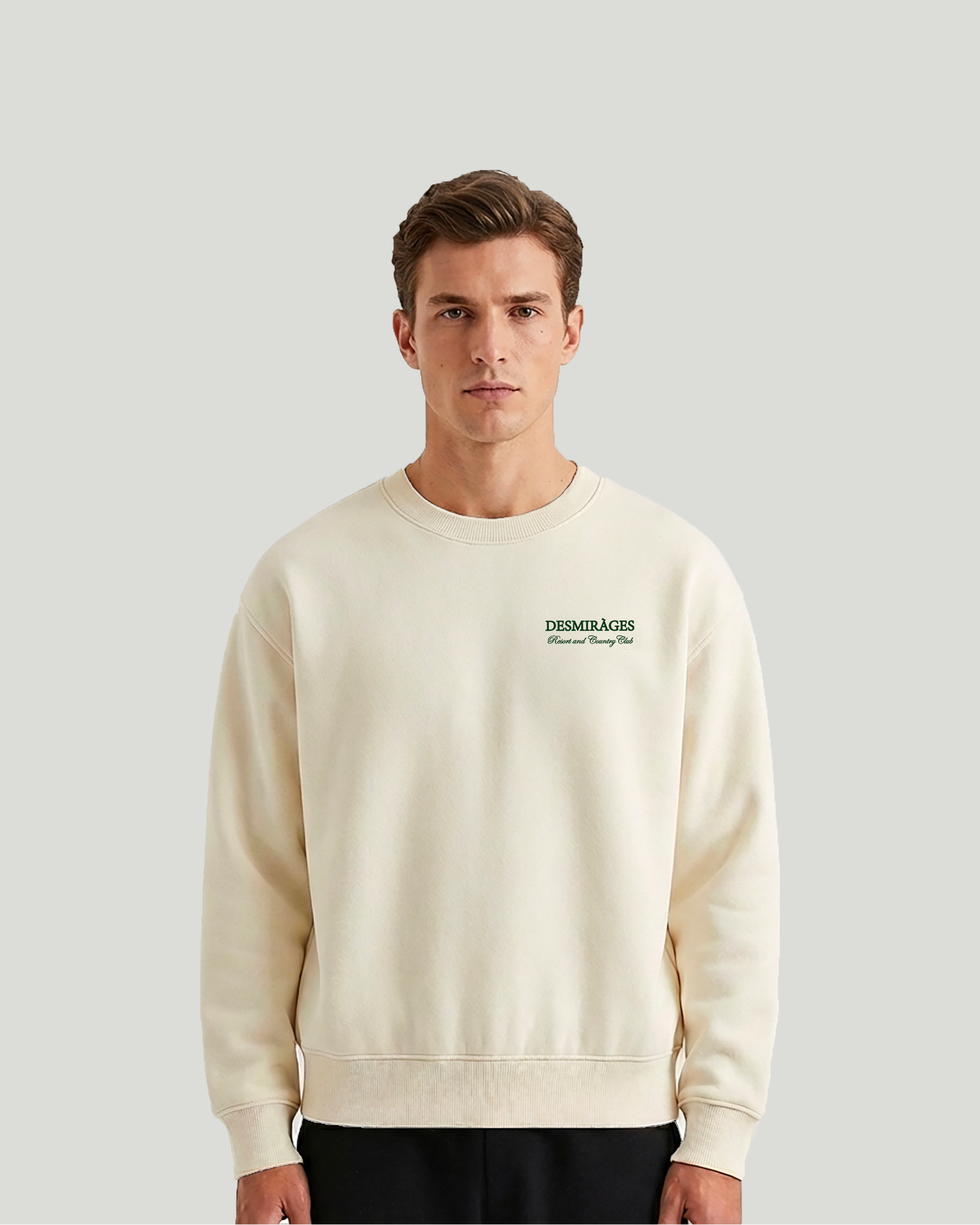Unisex oversized cream sweatshirt crafted from 100% cotton, featuring an embroidered logo. Made in Portugal. Where Country Club comfort meets elevated Athleisure.